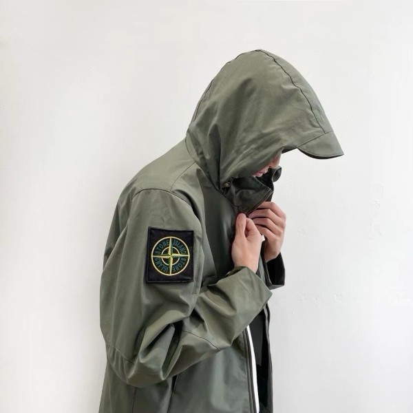 스*아일랜드 더블 와펜 패치 바람막이(카키)